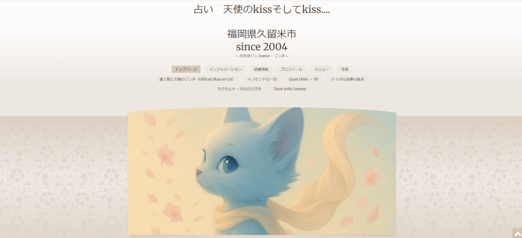 「天使のKissそしてKiss….」は、久留米市螢川町にある隠れ家的な占いサロンです。鑑定歴18年以上、1万6000件以上の実績を持つ長真由美先生がタロットを中心に鑑定を行っています。