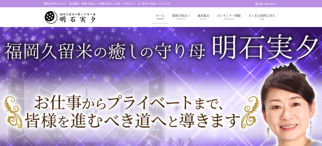 久留米市東町にある「占いサロン 明石実夕」は、紫微斗数や風水を駆使して運命を読み解く、信頼と実績のある完全予約制の占いサロンです。