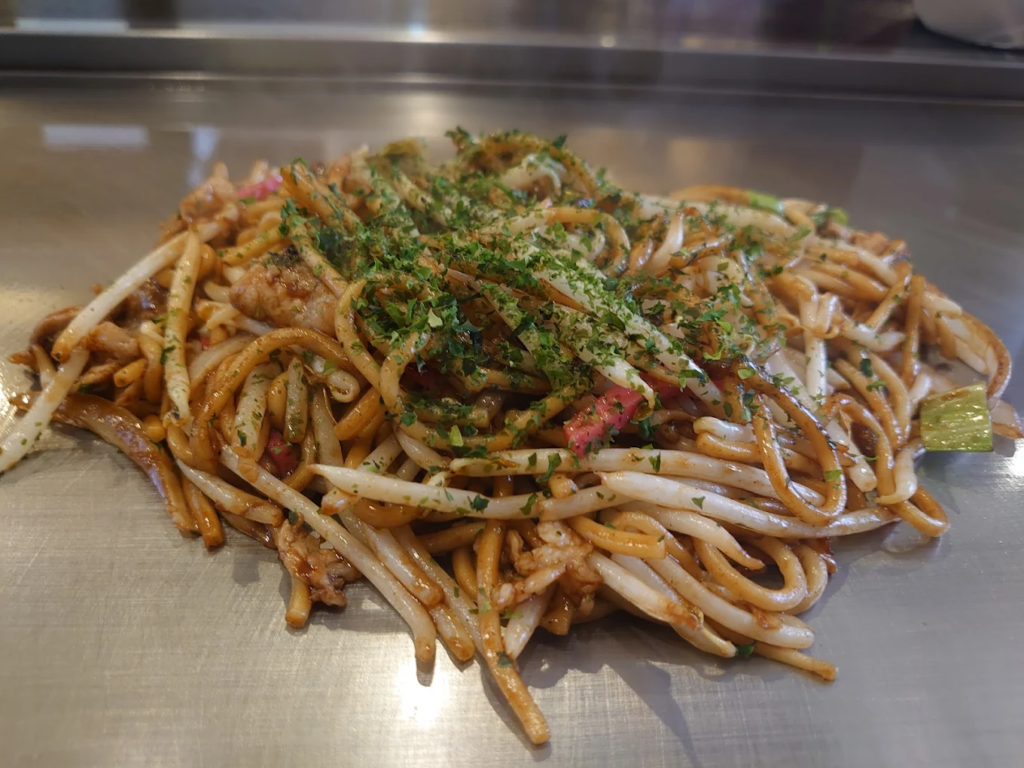 焼きそばは鉄板らしい香ばしさが立ち、ソースのコクと具材のうまみが一体になって満足感しっかり。ランチなら気軽に“非日常感”を足せるご褒美ごはんに、夜ごはんなら友だちとワイワイ、味変しながら楽しむのにも向きます。