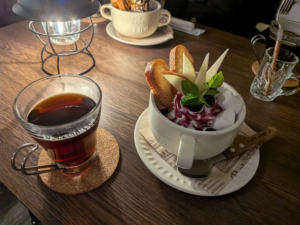 女子会なら、甘いもの派とお酒派が同じテーブルで楽しめるのも魅力です。ひとりでも入りやすく、予定の前後にふらっと寄って気分転換したい夜にも相性◎。