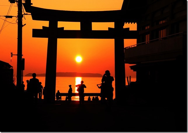 宮地嶽神社の象徴とも言えるのが、参道越しに玄界灘へ沈む夕日が一直線に差し込む「光の道」。特に2月と10月が見頃ですが、初詣の時期にも幻想的な余韻が残る景観は圧巻です。