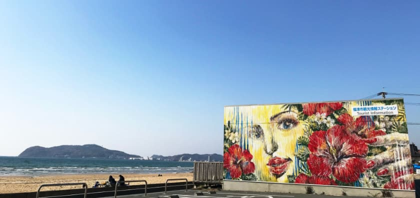 車で約10分の距離にある福間海岸は、水平線に沈む夕日が美しく、カフェも点在する人気の海辺エリアです。初詣の後に立ち寄って、海を眺めながらゆったりと過ごすのもおすすめの過ごし方です。