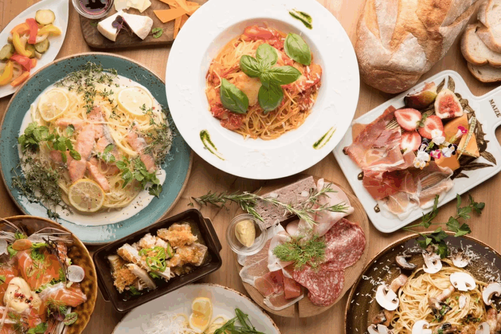 料理はパスタやピザのほか、肉料理や魚介の前菜まで多彩にそろい、クリスマスらしいシェアスタイルのディナーにもぴったり。気軽なデートからちょっと特別な夜まで、使い勝手の良い一軒です。