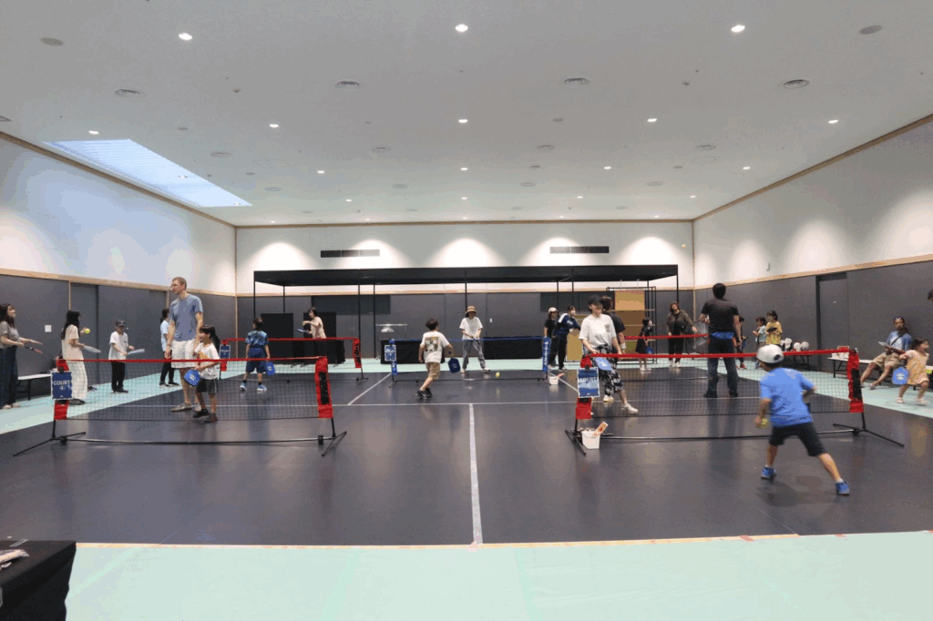 会場には縁日屋台やスタンプラリーが設置され、子ども連れの家族も楽しめる仕掛けがいっぱい。「普段ピックルボールをしない人にも気軽に来てほしい」という思いが込められており、まさにスポーツとエンタメの融合でした。