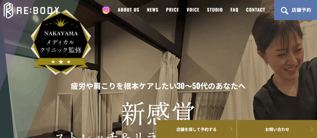 福岡市中央区・今泉にある RE:BODY(リボディ) は、ストレッチと揉みほぐしを融合させた独自のアプローチで、肩こり・腰痛などの深部の不調にアプローチするストレッチ専門店です。西鉄福岡(天神)駅から徒歩約4分とアクセスも良好で、仕事帰りや買い物ついでにも立ち寄りやすい立地が魅力です。