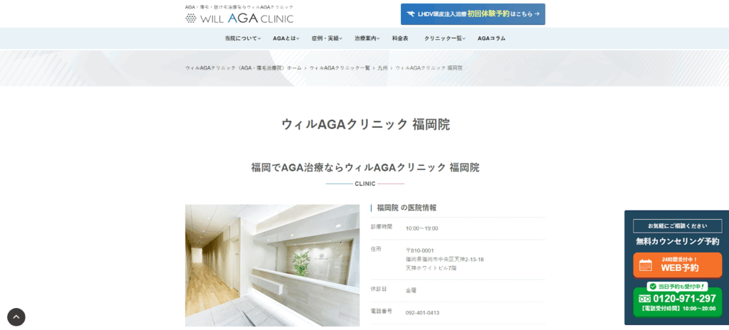 | 公式サイト | https://will-agaclinic.com/clinic/fukuoka/ |