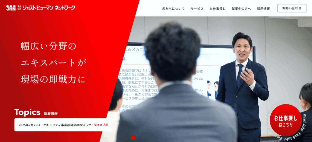 ジャストヒューマンネットワーク(JHN)は、福岡・天神に本社を構える総合人材サービス企業です。営業支援、販売・接客、コールセンター、事務、イベント運営など幅広い分野に対応しており、地元密着型の丁寧なサポートが魅力です。