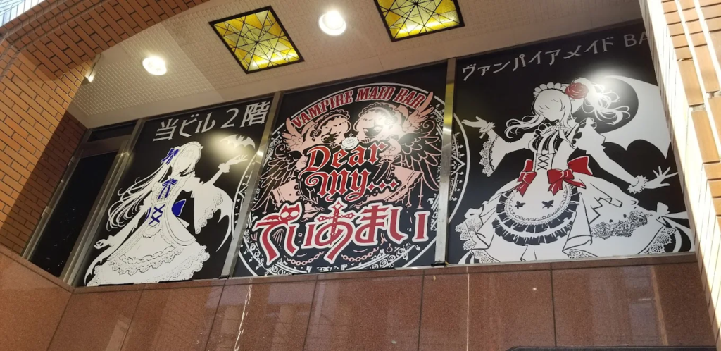「Dear my… でぃあまい」は、“ゴシック×ヴァンパイア”をテーマにした個性派コンセプトカフェ。店内は黒と赤を基調とした幻想的な雰囲気で、ダークで妖しげな世界観に包まれています。