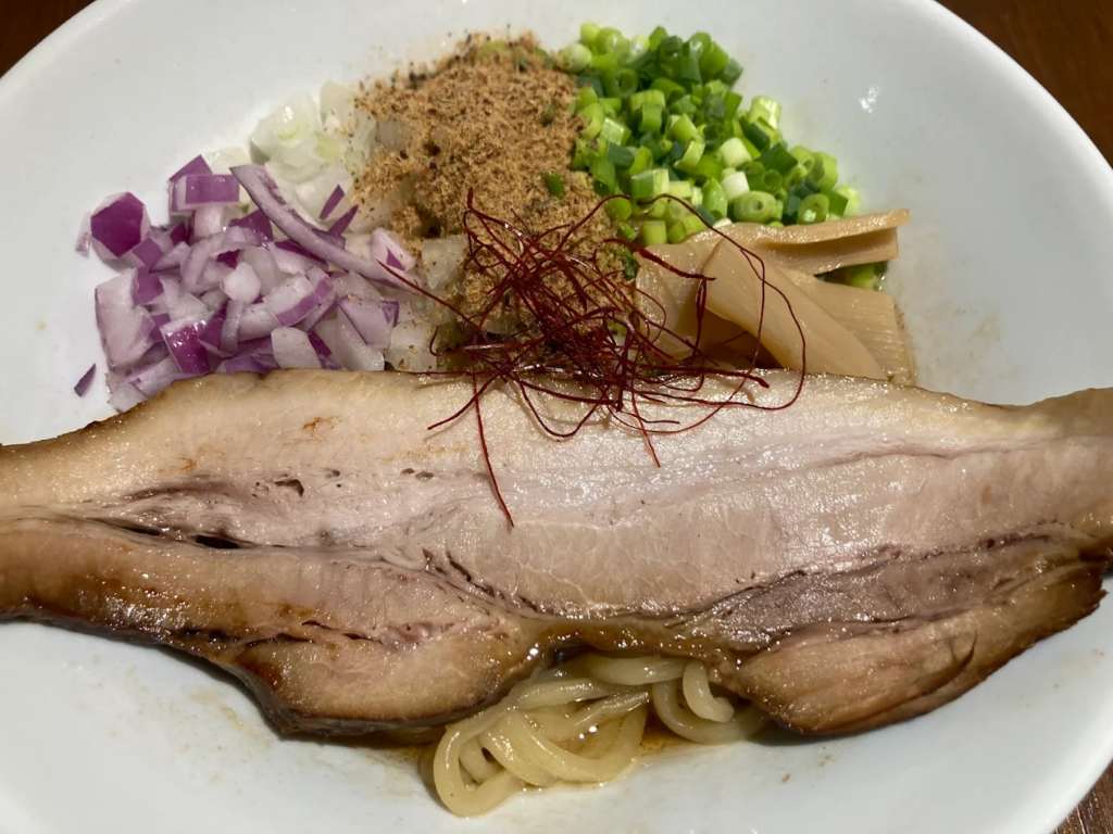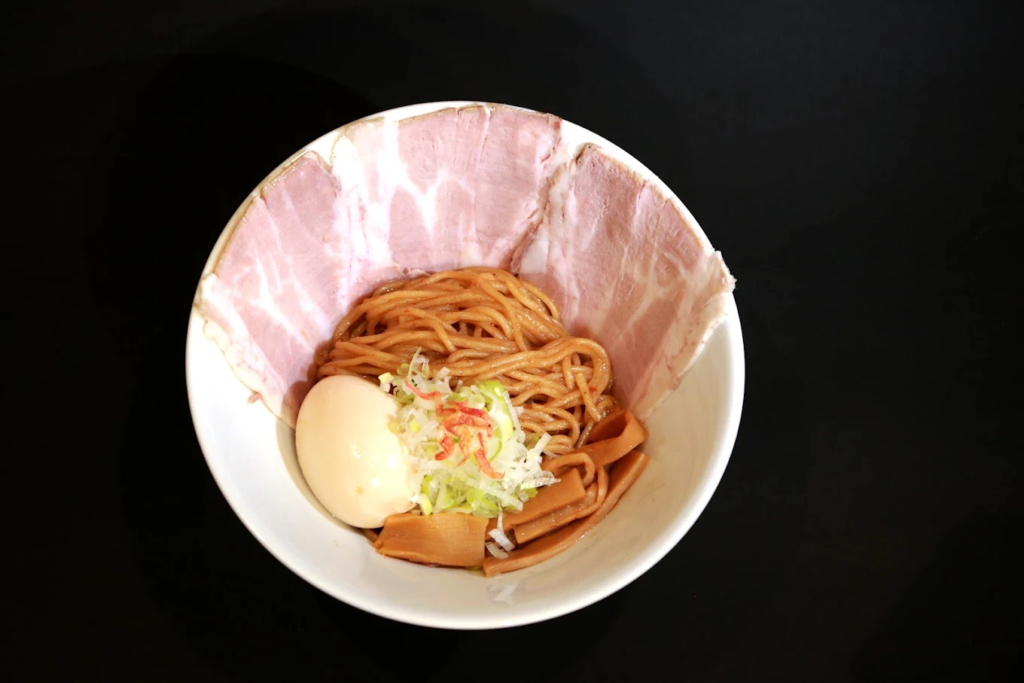 店名の通り、“豚”と“極太麺”が主役のまぜそば専門店。二郎系を彷彿とさせるボリュームとビジュアルながら、丁寧に仕込まれた醤油ダレと香味油のバランスが絶妙で、見た目以上に食べやすい一杯が人気です。
