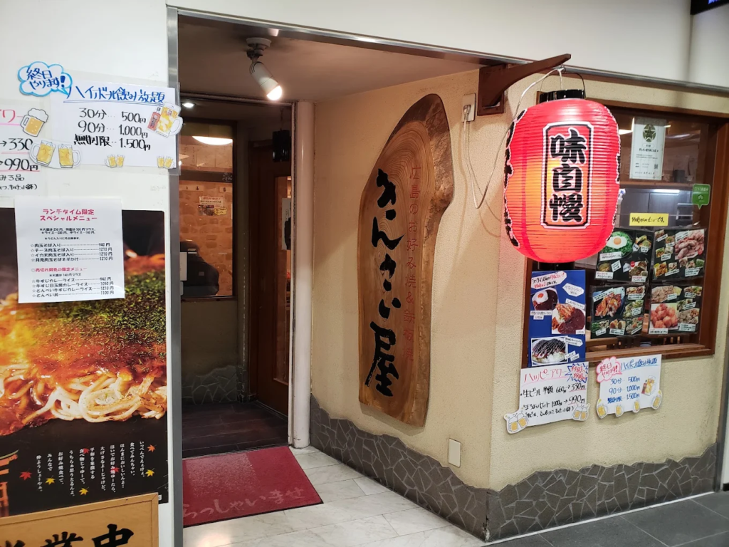 天神駅直結の「きんさい屋 天神ビル店」は、アクセス抜群の立地で気軽に立ち寄れる老舗鉄板焼き店。広島風お好み焼きを中心に、もんじゃ焼きや焼きそば、鉄板一品料理まで幅広いメニューを取り揃えています。