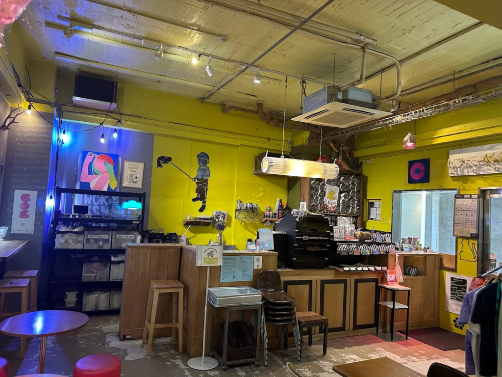 店内はインダストリアルでアートな雰囲気が漂いながらも、どこかリラックスできる空気感。カウンターでバリスタと話しながら過ごすのもよし、奥のスペースで静かに読書を楽しむのもよし。