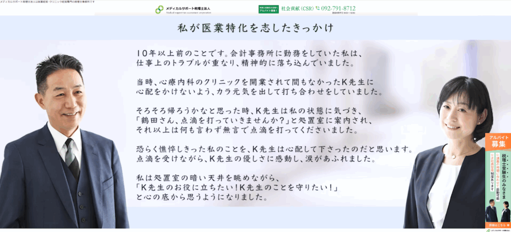 天神駅から徒歩圏内という立地も便利で、初回相談は無料。医療関係者が経営に集中できるよう、税務の面からしっかり支える頼れるパートナーです。