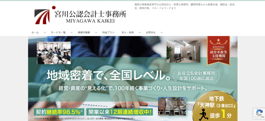 宮川公認会計士事務所は、福岡・天神に拠点を構え、企業経営を幅広く支援する総合型会計事務所です。法人税務から資金調達、節税対策、相続・事業承継まで、経営者が直面するあらゆる課題に対応できるのが大きな特徴。