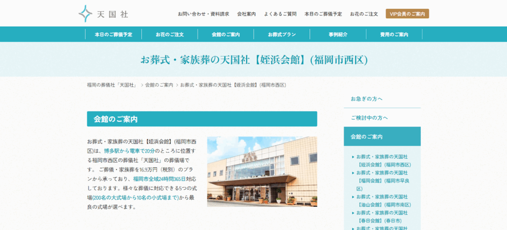 福岡市西区、姪浜駅南エリアに位置する「天国社 姪浜会館」は、地域密着型の信頼ある葬儀社です。JR姪浜駅から徒歩約5分と好アクセスで、遠方からの参列者にも配慮された立地が魅力。