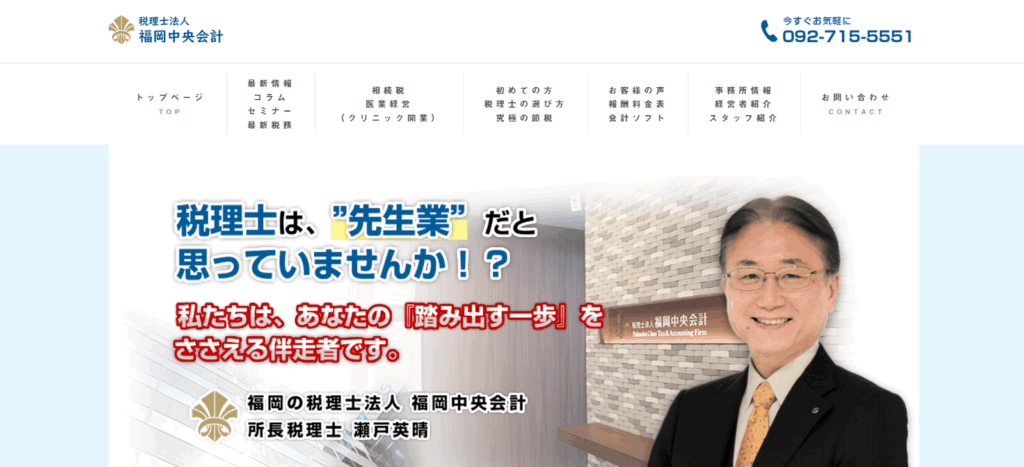 福岡中央会計は、創業から60年以上の歴史を持つ老舗の税理士法人で、相続税申告や事業承継に関する豊富な実績と信頼を誇ります。所在地は天神5丁目、駅から徒歩圏内で通いやすい立地です。