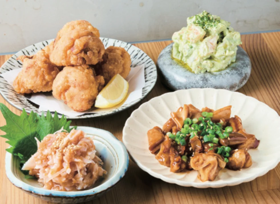名物は“せんべろセット”で、ドリンク2杯+おつまみ1品が1,000円以内という驚きのコスパ。定番の焼鳥から洋風のおつまみまで幅広いラインナップが揃い、昼飲みや2軒目利用にもぴったりです。