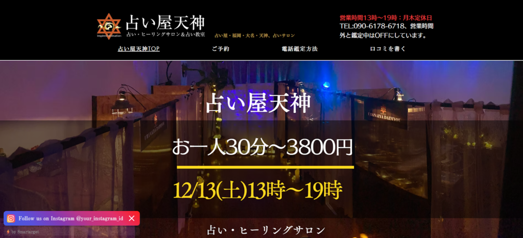 サロンは静かで落ち着いた雰囲気が漂い、「誰にも聞かれたくない話を安心してできる」とリピーターも多数。料金は30分3,000円〜と明確で、初めて占いを受ける方にもおすすめです。完全予約制のため、希望する場合は事前の連絡をお忘れなく。